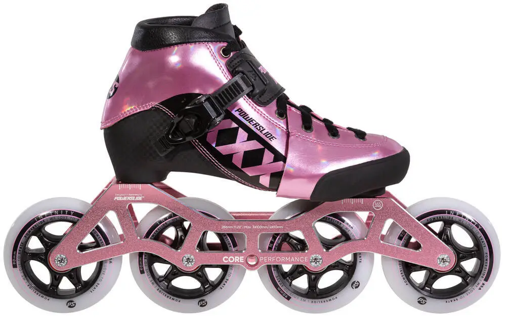 De XXX Verstelbare zijn schakelt je in turbomodus wanneer deze grote wielen op snelheid komen. Dit model van Powerslide speed skates wordt uitgerust met een degelijke, uit een stuk boot.