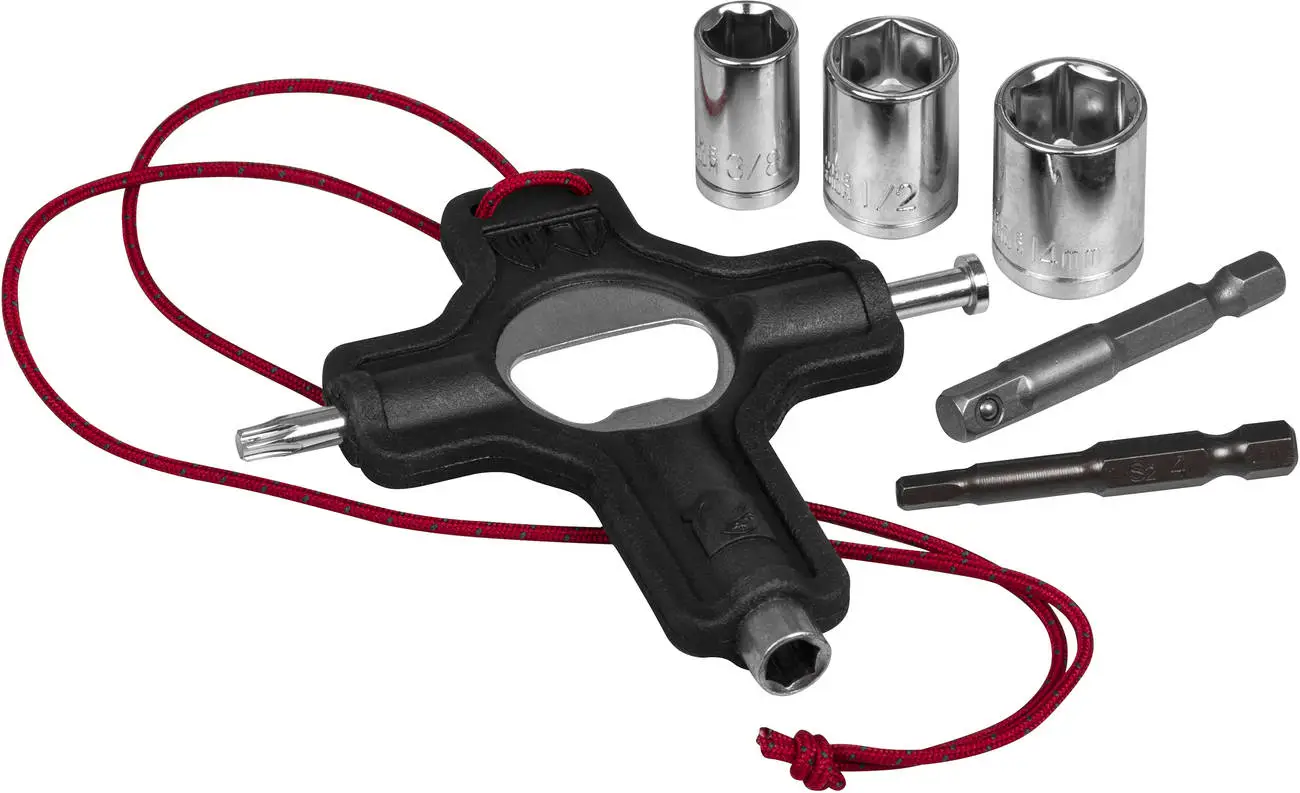 De multi functionele Cross Board en Quad-skate tool van Wicked is een fijn compleet pakket. Met gereedschap om lagers uit te nemen en alle dopsleutel maten die je moet gebruiken op skateboards en rolschaatsen.